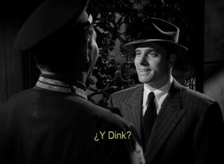 Dink se quitará de en medio a Lancaster en cuanto pueda, al verse pillado por las reivindicaciones y peticiones de su ex socio. Utilizará a su novia para buscarle evasión, pero todo subraya la falsedad del personaje, que en cuanto Frankie sale de su despacho pide que se lleven las simbólicas cervezas que éste le envió, representantes líquidas de la antigua comunión del trío de amigos, un acto que vemos en plano general con objetos en primer plano a los lados del encuadre, un encuadre amplio, un rasgo estilístico muy usado por Haskin en la película.