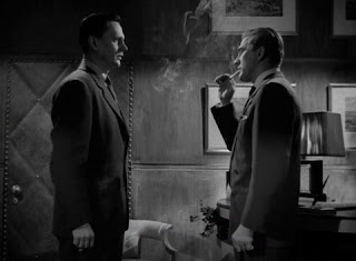 -Situará en muchas ocasiones a sus personajes de perfil, un encuadre retador. Lo vimos en la primera escena en la habitación del hotel con Lancaster y lo veremos en la presentación de Douglas también en su despacho. Ambos de perfil, sentados, bebiendo y hablando de muerte a sus acompañantes que se mantienen de pie. Un duelo desde la distancia magistralmente retratado en equivalencias visuales. El mismo plano para los dos.