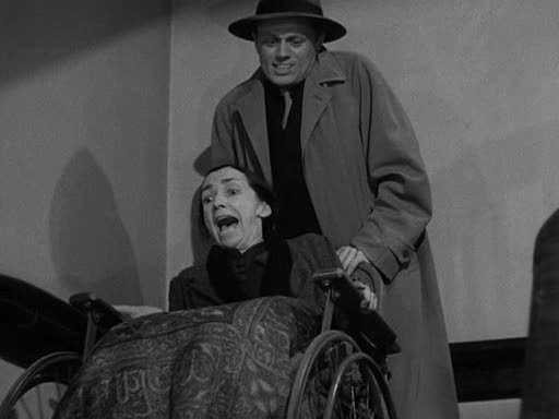 Sin embargo lo mejor de la película se encuentra en la segunda parte, cuando un reformado Nick intenta llevar adelante una vida tranquila y respetable y acaba enfrentándose con el peligroso Tommy Udo. Aquí es donde cobra una enorme importancia Richard Widmark haciendo una interpretación inolvidable y colosal en la que da forma a uno de los criminales más terroríficos que haya podido ver en una película. Bordeando la fina línea que separa una actuación magistral de la sobreactuación pero sin llegar a traspasarla, Widmark está perfecto encarnando a ese criminal psicópata que tanto parece disfrutar matando. Para la posteridad queda la escena en que arroja a una indefensa mujer en silla de ruedas por las escaleras, de una brutalidad apabullante.