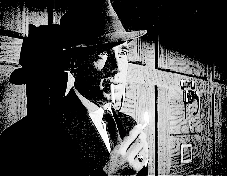 Con la buena ayuda del operador Leo Tover, el director John Cromwell hace de Bogart un “privado” improvisado que parodia a… Bogart, al igual que la peligrosa y venenosa Coral “Dusty” / Lizabeth Scott lo hace con… Lauren Bacall, imitando hasta su voz en algunas ocasiones como en los diálogos que acabamos de transcribir. A la calidad de la ambientación con la vuelta de la guerra de estos pobres héroes y del ritmo bien marcado, conviene añadir algunas ideas como, por ejemplo, esta música que acompaña el acólito de Martinelli, y el humor de la narración como esta reflexión de Rip en el tren, cuando se enteran que Johnny va a recibir una medalla de honor en Washington: “a lo mejor, el presidente te dejará sentarse sobre su piano”, en referencia a una foto tomada en el National Press Club en 1945 de Harry Truman tocando el piano sobre el cual esta sentada… Lauren Bacall.