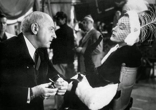 | Billy Wilder dirige a Cecil B. DeMille y Gloria Swanson en una de las escenas clave de la película |