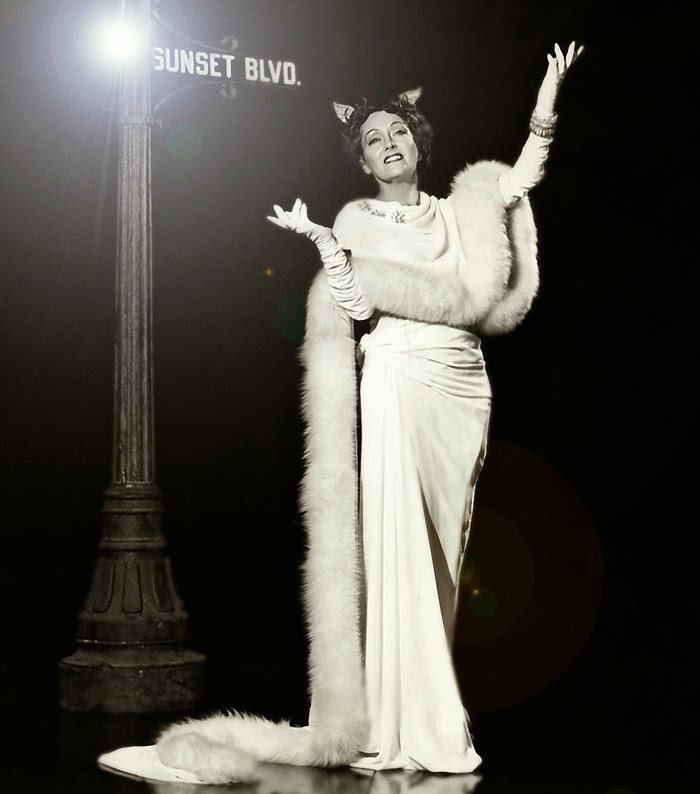 Naturalmente que hay que referirse al asunto de la decadencia, de la caída, del crepúsculo de los dioses, de esos seres idolatrados por el público, por los directores, por la industria y que, de pronto, sin que se sepa exactamente por qué, se convierten en seres solitarios, enrarecidos, infelices y tristes, añorando y soñando con la imposible recuperación de una fama perdida. Sunset Boulevard nos acerca a la vida de Norma Desmond, una mujer ya madura, todavía bella, que vive como una especie de Charles Foster Kane (de Ciudadano Kane) femenino, encerrada en su mansión, dedicada a añorar sus glorias pasadas, centrada en sí misma, disfrutando de una fortuna que le permite contar con un fiel mayordomo, que la cuida y que interpreta al órgano obras de Bach. Centenares de fotos adornan su estancia, todas de sí misma, en las cuales aparece en todo su esplendor como artista famosa y adorada. Cuenta con un teatro en casa que le permite ver a su antojo sus gloriosas películas (algo que no parece extraño hoy para nosotros, que tenemos a nuestro alcance sonidos, cintas y escenas, como si fuéramos potentes Cecil B. DeMilles contemplando sus obras antes de aprobarlas). Para sus ocasionales salidas al mundo exterior, Norma cuenta con un magnífico coche Isotta Fraschini Tipo 8A Landaulet, modelo 1929, el cual ha sido considerado como el “más triste de los carros del cine”, dado que cuando la artista de ficción creyó que la iban a contactar de nuevo desde la Paramount para ofrecerle un papel y un reconocimiento por un guion que había propuesto, resulta que lo que querían era alquilarle su auto para usarlo en una película.
