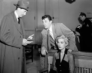 La chica de la función es Lizabeth Scott (Scranton, Pensilvania, 29/9/1922-Los Ángeles, California, 31/1/2015). Nacida como Emma Matzo, debutó en Broadway en 1942, con el nombre artístico de Liz Scott, que cambió ligeramente por el de Lizabeth Scott cuando, en 1943, entró bajo contrato en las filas de la Warner Bros. Tras participar en una serie de cintas no muy destacadas, obtuvo su primer éxito cinematográfico con su papel en EL EXTRAÑO AMOR DE MARTHA IVERS (THE STRANGE LOVE OF MARTHA IVERS, Lewis Milestone, 1946). Esta película le abrió las puertas del cine negro, convirtiéndose en un rostro habitual en este tipo de films, si bien nunca alcanzaría el estatus de estrella. Asumió casi siempre roles secundarios, interpretando generalmente a la compañera del protagonista o a mujeres fatales de cierto empaque. Compartió protagonismo con John Hodiak y Burt Lancaster en LA HIJA DEL PECADO (DESERT FURY, Lewis Allen, 1947), y con Don DeFore, Dan Duryea y Arthur Kennedy en DEMASIADO TARDE PARA LAS LÁGRIMAS (TOO LATE FOR TEARS, Byron Haskin, 1949), dos títulos menores pero muy apreciados del noir. Su mejor trabajo lo realizó como partenaire de Humphrey Bogart en CALLEJÓN SIN SALIDA (DEAD RECKONING, John Cromwell, 1947), aunque también estuvo estupenda en AL VOLVER A LA VIDA (I WALK ALONE, Byron Haskin, 1948), secundando al eficaz dúo interpretativo formado por Kirk Douglas y Burt Lancaster, y en el debut cinematográfico del gran Charlton Heston, CIUDAD EN SOMBRAS (DARK CITY, William Dieterle, 1950). Lizabeth Scott logró imponer en pantalla una expresión entre hosca y altiva, matizada por una cierta tristeza, que venía muy bien a los personajes que interpretaba. Como además sabía cantar, era la actriz ideal para encarnar a vocalistas de night-club, mujeres fatales y aventureras de todo tipo. En cierto modo, venía a ser una versión más modesta y con menos matices de Lauren Bacall, a quien Scott siempre trató de emular.