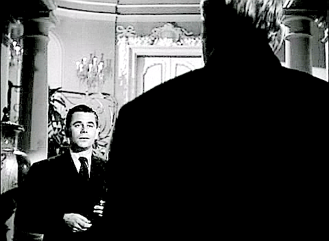 Rudolph Maté crea unas imágenes narrativas entre Mendson y Farrell: o el primero se sitúa más alto que el segundo (escaleras) o se forma el trío con el bastón, o más: la composición triangular Mendson, su retrato y Johnny.