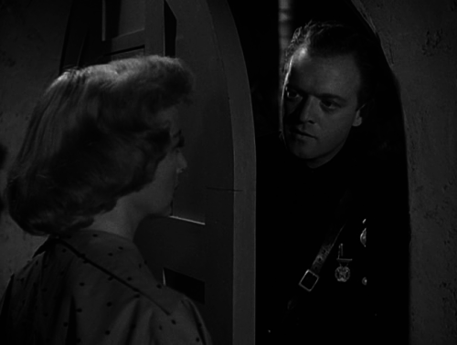 Pese a las reticencias de esta, poco a poco Bill logrará extender ante ella una tela de araña que la lleva a casarse con él, viviendo ambos su luna de miel en el motel que han adquirido con el dinero de la herencia que ella ha recibido, lo que en principio debería suponer el inicio de una estabilidad para ambos, habiendo este abandonado las tareas policiales –y según él, el uso de todo tipo de armas-. Sin embargo, pronto se mostrará la verdadera faz de una relación que se ha fraguado de forma artificial, cuando Evelyn confiese a su ya esposo que se encuentra embarazada de cuatro meses. Lo que en teoría debería ser motivo de alegría, supondrá para el protagonista un nuevo elemento de desazón y, en definitiva, el afloramiento del lado más oscuro de su personalidad. No le importará tanto ser padre, como el hecho de que el bebe pueda provocar la revisión del caso en el que su crimen se encubrió como un hecho accidental, al revelar las relaciones que mantenían los hoy esposos antes de que este falleciera. Ello incluso hará plantear en él la posibilidad de un aborto, aunque finalmente acceda a ser llevada a un pueblo abandonado –una solución ingenua de planteamiento, pero tremendamente efectiva a nivel visual-. Será una especie de fatum, donde intentarán hacer renacer una relación que aparece por completo herida –impecable el detalle de la presencia de la voz en off del anterior esposo de Evelyn, al insertar un disco por error-, hasta que la presencia de una tormenta mientras se avecina el parto de esta, convencerán a Webb a localizar a un viejo doctor en la ciudad, para con ello traer a la luz al pequeño hijo de ambos. Pese a las precauciones de este para no ser reconocido, no podrá evitar que la venida del recién nacido sea el principio del fin de su plan. Un plan este en el que en última instancia tendrá un papel destacado la astucia de su esposa –centrada sobre todo en el deseo de salvar a su bebé-, sirviendo como catarsis para la inmolación de ese policía que un día intentó vislumbrar la manera para despuntar de su confinamiento social. Se trata de un episodio final –todo el capítulo desarrollado en esa ciudad abandonada, iniciado a partir de un intenso fundido en negro- en el que podemos detectar ciertas huellas con ACE IN THE HOLE (El gran carnaval, 1951. Billy Wilder) –estrenada medio año antes que el título que nos ocupa-.