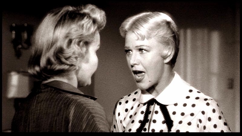 La pregunta se enuncia y se responde en un decorado casi único – la habitación de un hotel, en el que la policía protege a la reclusa -, quizá con la finalidad de crear una atmósfera doblemente angustiosa y opresiva: por un lado, para Hallett, que trata de conseguir como sea un nuevo testigo, y por otro, para Sherry que teme por su vida. Pero el cineasta no aprovecha bien los recursos dramáticos como hubiera hecho Mankiewicz o Kazan, pues Karlson es más cineasta de acción que de palabras y el tono teatral no lo domina. Tal vez con la intención de dar mayor dinamismo al relato, éste se ramifica en otras direcciones: el resentimiento de Sherry con la sociedad, la simpatía que siente por la carcelera que le acompaña y las vicisitudes del policía que la protege, Vince Striker (un excelente Brian Keith) en su relación con Sherry.